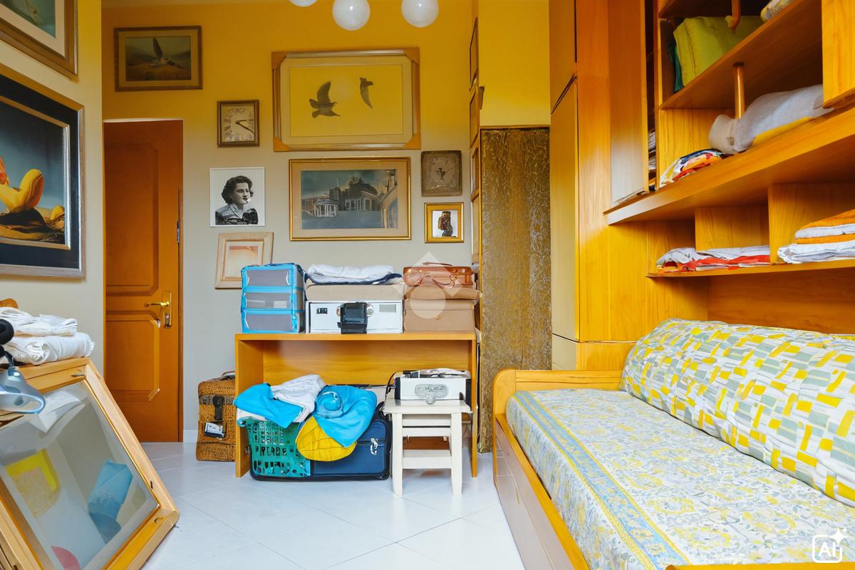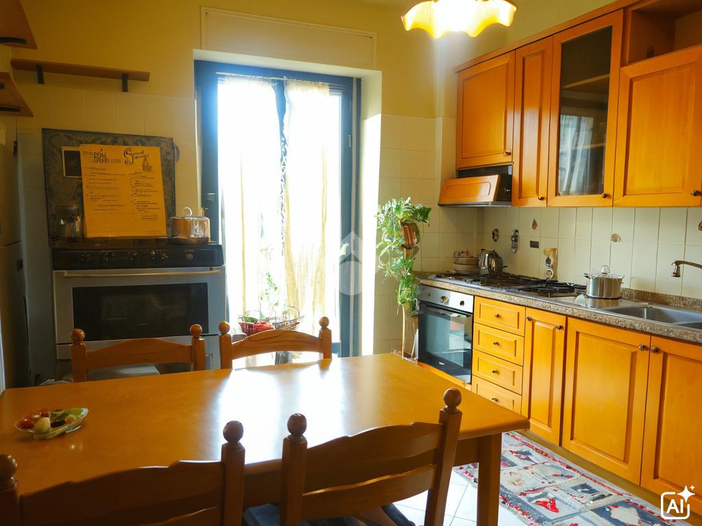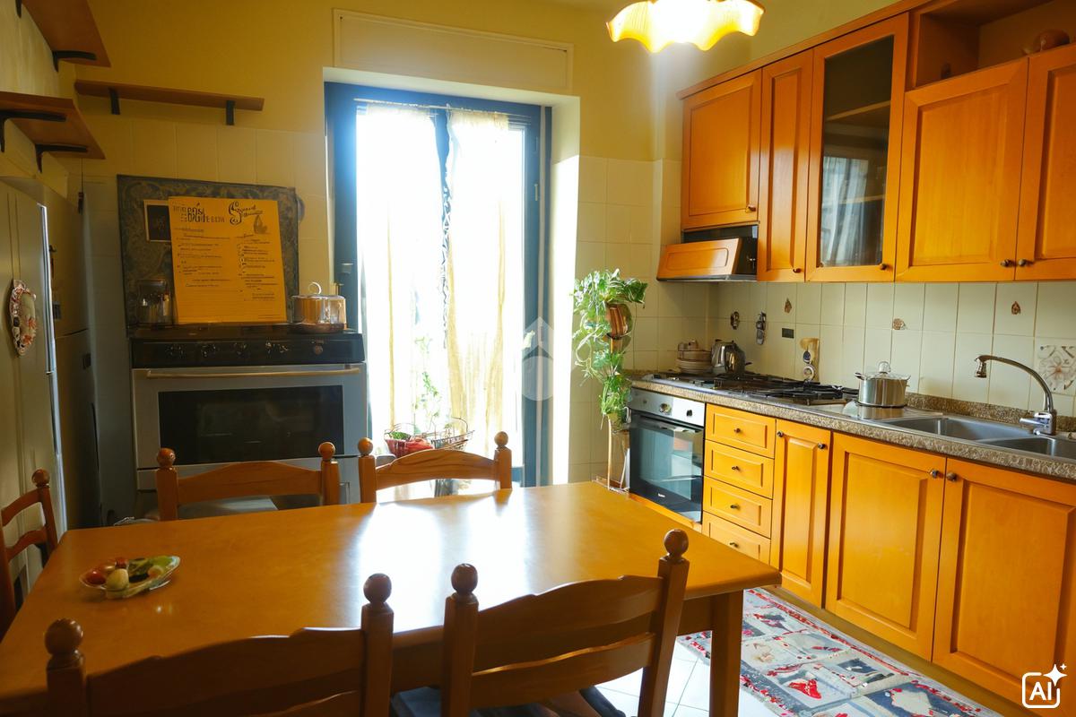 A seguire, prima di raggiungere la zona notte, troviamo un comodo ripostiglio e una cucina abitabile con portafinestra, che ci permette di vivere il secondo balcone.