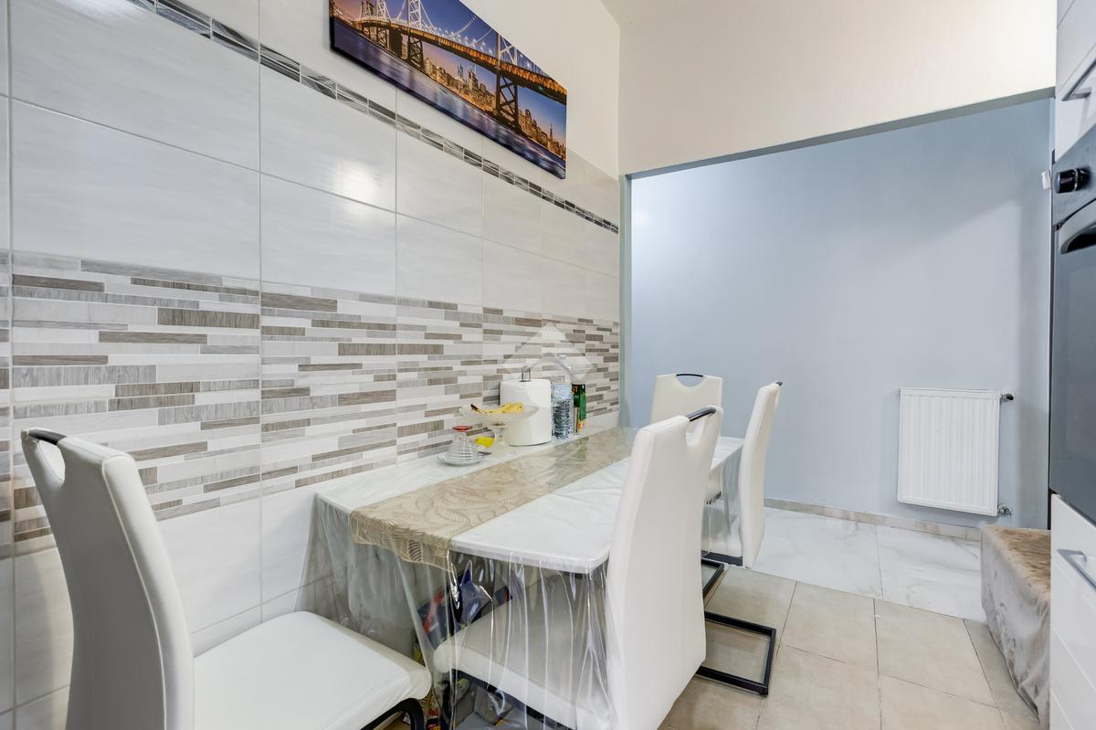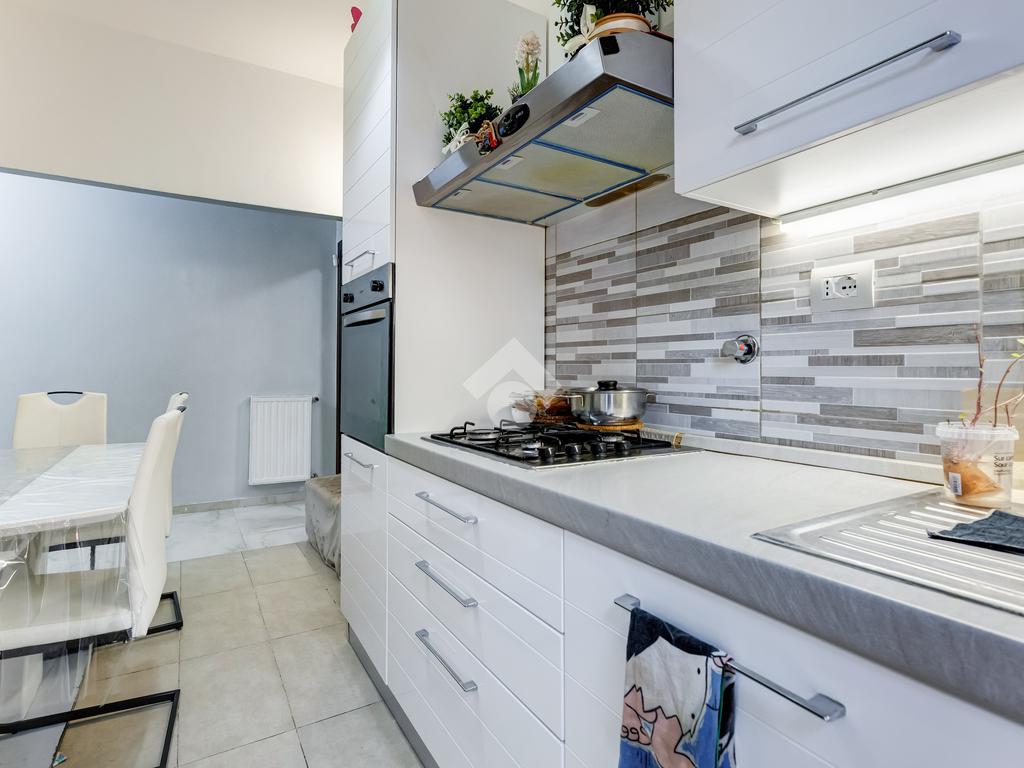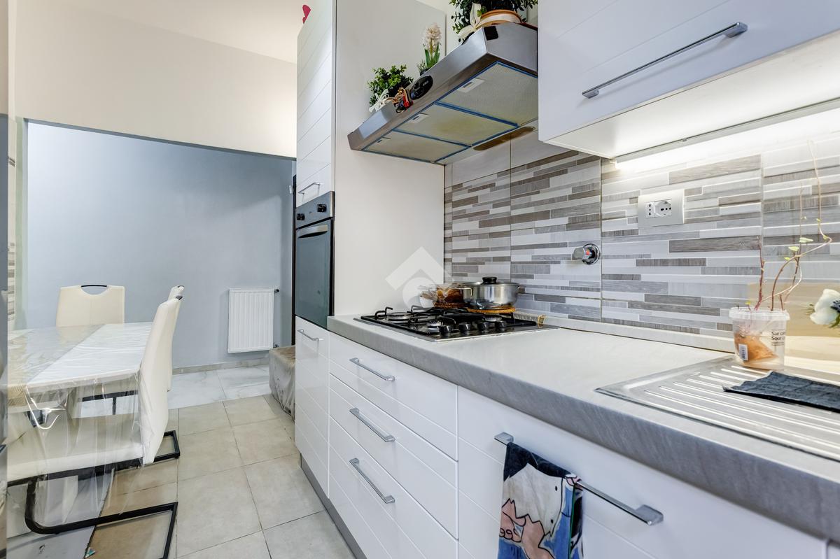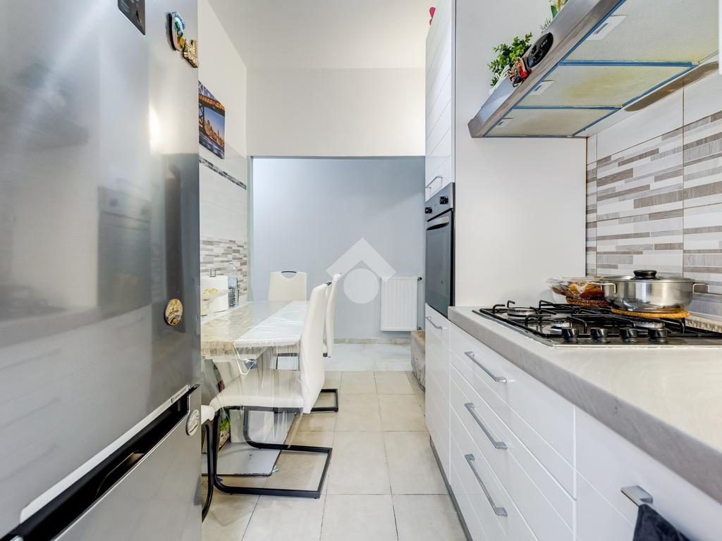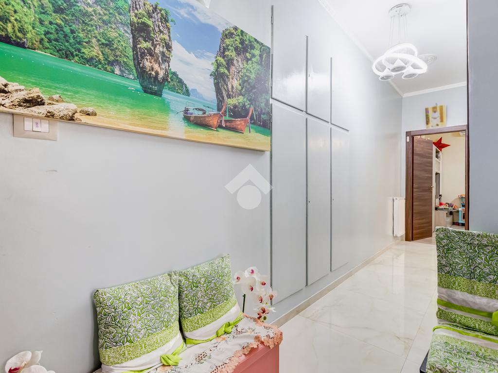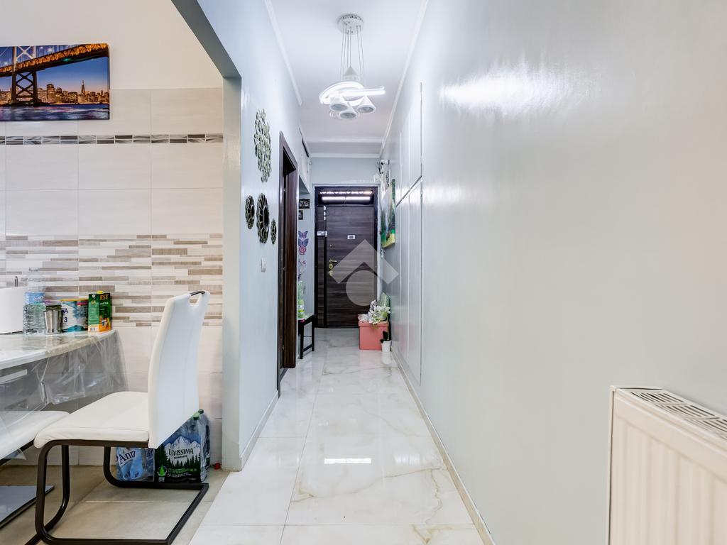 Saliamo le scale esterne e ci troviamo su un corridoio che ci mostra gli ambienti, vale a dire due camere di cui una ampia, cucina abitabile, bagno finestrato con doccia.