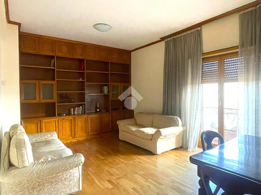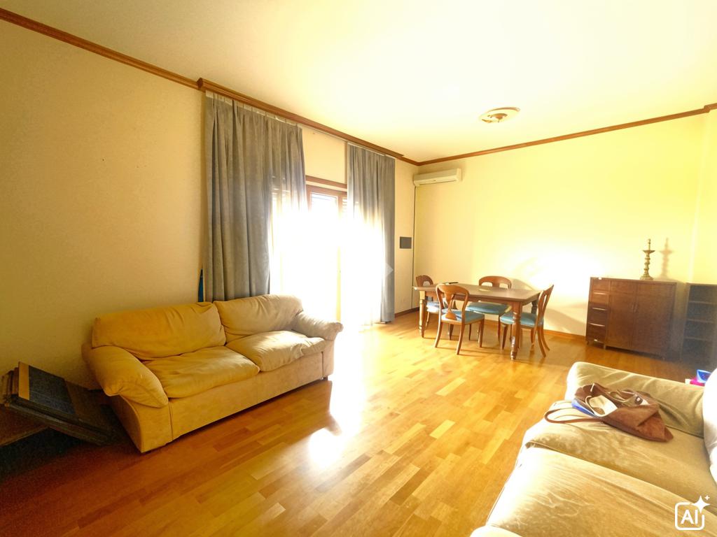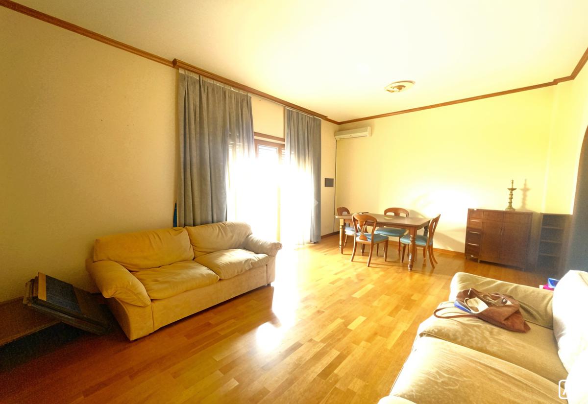 Entriamo a questo punto nell'appartamento trovando il disimpegno che ci accompagna alla zona giorno, molto spaziosa, con porta finestra per raggiungere il primo dei tre balconi.