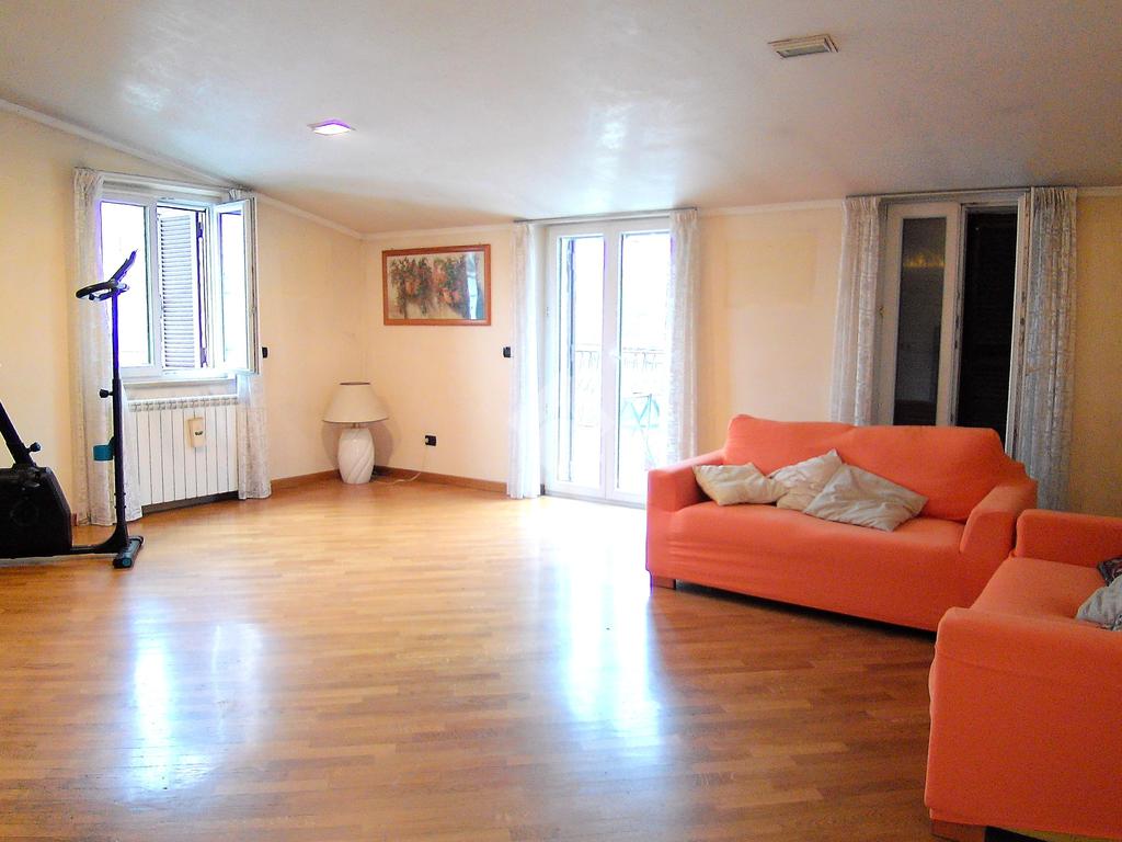Dunque il soggiorno ha una doppia esposizione ed un terrazzo vivibile, e da esso si accede all'angolo cucina con altro balcone in cui troviamo la caldaia per acqua calda e riscaldamento autonomo.